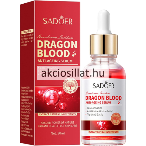 Sadoer Dragon Blood Sárkányvér Arcápló Szérum 30ml Revitalizáld a bőröd: A Dragon Blood szérum egy fejlett öregedésgátló arcszérum, amely a Dragon Blood kivonat erejét kihasználva táplálja és megfiatalítja a bőröd, elősegítve a fiatalos és ragyogó arcsz