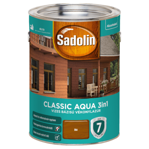 1 kép Sadolin CLASSIC AQUA SELYEMFÉNYŰ VÉKONYLAZÚR 5L, DIÓ