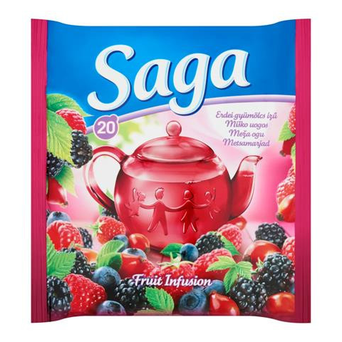 Élvezze a Saga gyümölcsös ízvilágát!Erdei gyümölcs ízű filteres gyümölcstea. A gyümölcsteák - mivel nem a teacserje leveleiből készülnek - nem tartalmaznak koffeint / teint, ezért gyermekek számára is megfelelő választás.