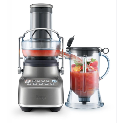 Gyümölcscentrifuga - elektromos, centrifugális, 5 sebességfokozat, töltőnyílás mérete 88 mm, létartály űrtartalma 1,5 l, péptartály űrtartalma 3 l, csúszásgátló talpak és kábel tárolóhely, vezérlés gombokkal, konstrukció anyaga fém, légyűjtő tartály anyaga műanyag, szűrő anyaga rozsdamentes acél, méretei 45 × 36 × 39,8 cm (ma × szé × mé), létartály, péptartály, szűrő és nyomóprés a csomagban Ha szereted a frissen préselt gyümölcs- vagy zölds