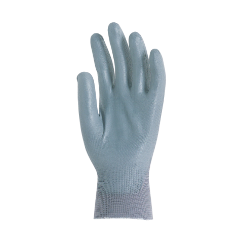 BARKÁCSKESZTYŰ MÁRTOTT 10 SZÜRKE 100% POLIAMID -100% poliamid szál -tenyerén poliuretánnal mártott precíziós kesztyű, gumírozott mandzsettával.