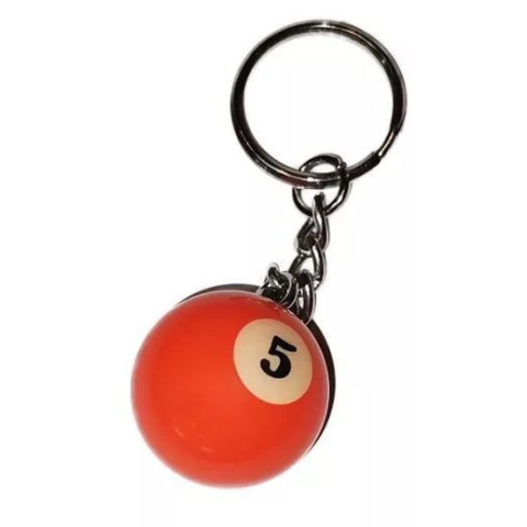 A kulcstartón az ikonikus, narancssárga színű 5-ös számú biliárdgolyó található, amely egyedi megjelenést biztosít a mindennapi használ