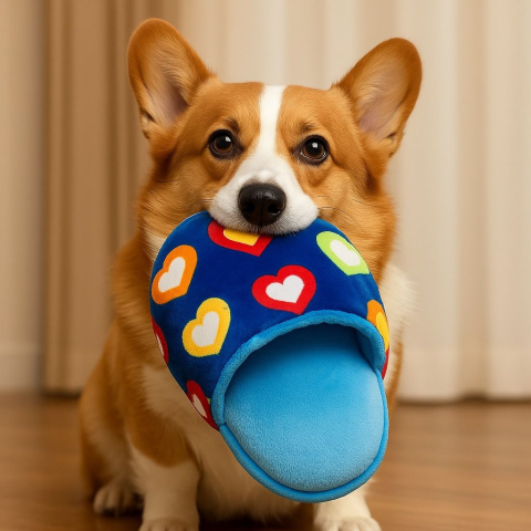 Saját Csipogó papucs alakú plüss kutyajáték játék kutyáknak 1 kép