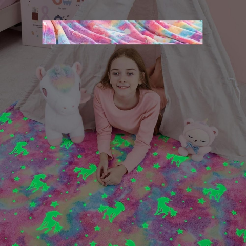 1 kép Saját Sötétben világító unikornisos wellsoft plüss takaró