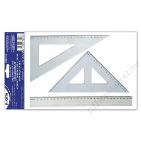 Vonalzókészlet, műanyag, 3 darabos, SAKOTA (ISKE047) - 3 db-os készlet - a szett tartalma: - 1 db 45°-os, 16 cm-es számskálájú háromszög vonalzó - 1 db 60°-os, 21 cm-es számskálájú háromszög vonalzó - 1 db 30 cm-es vonalzó Gyártó/első EU forgalmaz