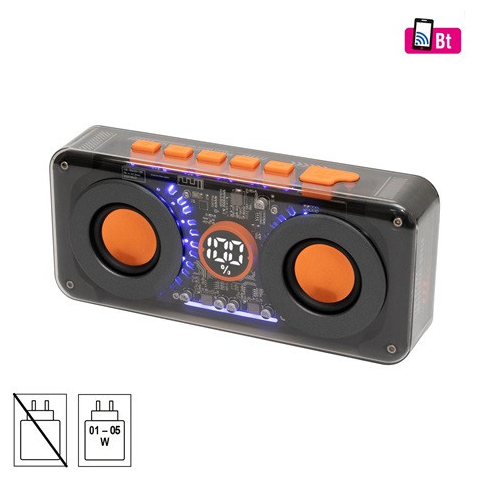 Tapasztald meg a futurisztikus dizájnt és a modern technológia ötvözetét a SAL MECHAPOWER vezeték nélküli hangszóróval. Az elegáns, átlátszó burkolatban megbúvó változtatható RGB LED fényjáték nem csupán szemkápráztató, de bármilyen környezethez kiválóan illik.