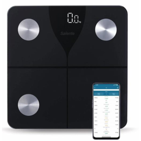 Személymérleg - digitális diagnosztikai, okos, terhelhetőség 180 kg, testzsír mérés, izomtömeg mérés, testvíz mérés, lehetőség okostelefonhoz csatlakoztatásra és bazális anyagcsere sebességének mérése, Bluetooth alapú csatlakoztatás, mérőfelület anyaga üveg, 4 érzékelő, Android és iOS kompatibilis, tápellátás AAA elemek, fehér kivitel A Salente SlimFit intelligens személymérleg 15 paramétert képes mérniA Salente SlimFit intelligens személymérleggel tö