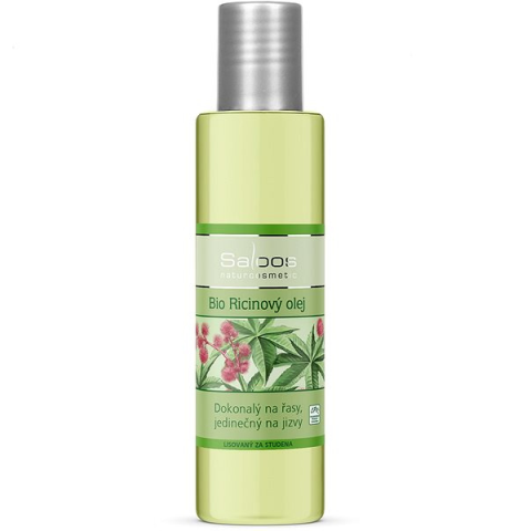 Masszázsolaj - 125 ml, női, érzékeny, kombinált, száraz és érett bőrre alkalmas, hegre és irritált bőrre ajánlott, természetes összetevőjű és vitaminos, hatóanyaga: antioxidánsok, ricinusolaj és e-vitamin, BIO, vegán 100% bio növényi olaj, amely elősegíti a szempillák, szemöldök és haj növekedését. Puhítja a száraz bőrt, minimalizálja a gyógyult hegek és striák láthatóságát. A vegán összetételű Saloos Bio Ricinuso