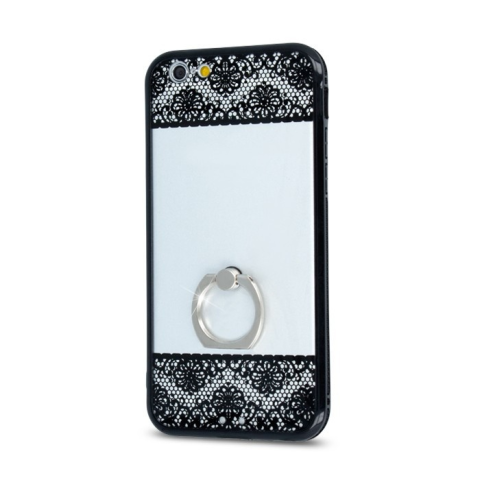 1 kép Samsung G920 Galaxy S6 fekete "Floral" gyűrűs hátlap tok