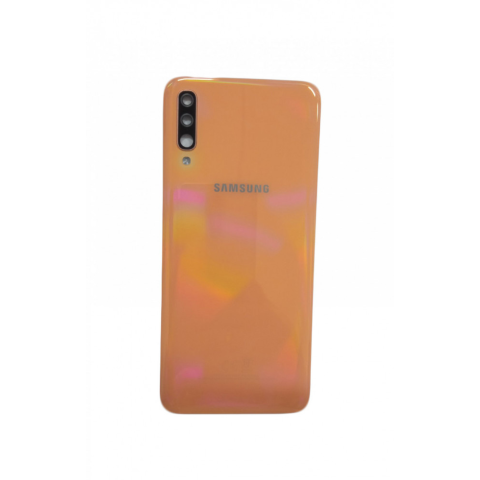1 kép Samsung Galaxy A70 gyári készülék hátlap, bontott, kamera lencsével, narancssárga, SM-A705