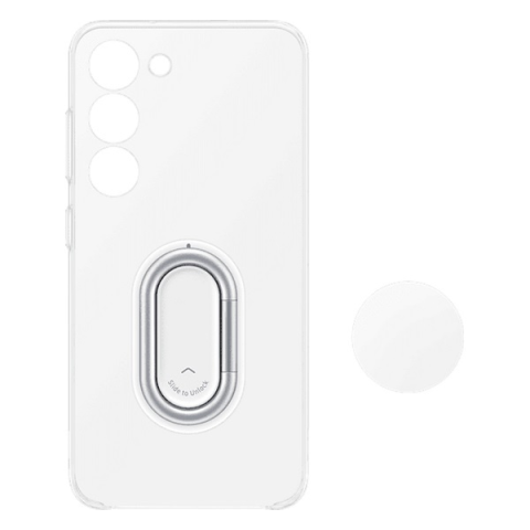 1 kép Samsung műanyag telefonvédő (ultravékony, telefontartó gyűrű, kitámasztó) ÁTLÁTSZÓ Samsung Galaxy S23 (SM-S911)