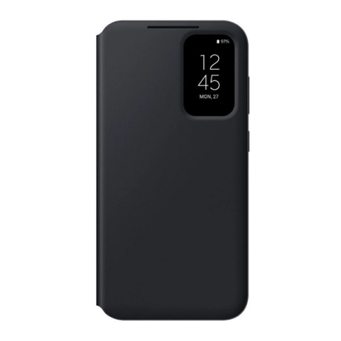 1 kép Samsung tok álló (aktív FLIP, oldalra nyíló, átlátszó előlap) FEKETE