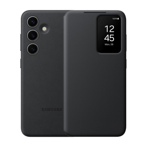 1 kép Samsung tok álló (aktív FLIP, oldalra nyíló, átlátszó előlap) FEKETE