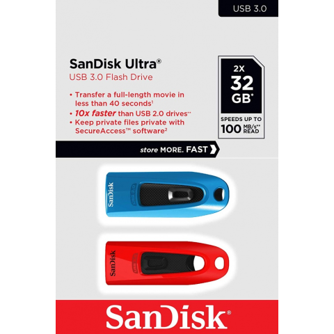 SANDISK Ultra 32GB-os Piros-Kék színű pendrive USB 3.0 csatlakozással. - 2db/csomag