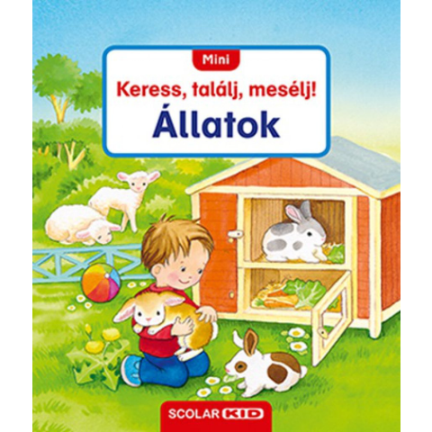 A népszerű Keress, találj, mesélj! böngészősorozat „kistestvére", a Mini Keress, találj, mesélj! még kisebbeknek készült, akár 1 éves kortól lapozgathatják. Ennek megfelelően e kötetek kisebb méretűek és terjedelműek, és kevésbé részletgazdag az illusztrációjuk, mint az eredeti Keress, találj, mesélj! böngészősorozat tagjainak.E kötetben a kicsik megtalálják kedvenceiket – a ház körül, a tanyán, az erdőben, a tóparton és az állatkertben élő legi