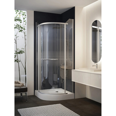 80 cm x 80 cm x 195 cm (beépítési méret: 77-79 cm) 5 mm vastag, négyzet mintás, edzett biztonsági üveg. Matt ezüst ívek és profilok. Mágneses ajtózár. Jobb-Bal ajtónyítási lehetőség. Króm törölköző tartós fogantyú. Fém zsanérok
