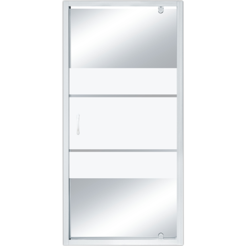 Zuhanyfülkeajtó - 88-92x185 cm - 5 mm-es csíkos biztonsági üveg - fehér alumínium profil - zsanéros ajtónyitás