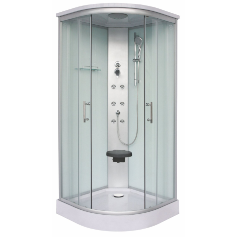 Rumba hidromasszázs zuhanykabin. A Quick Line világszabadalommal védett gyorsrögzítő rendszer a komplett zuhanykabinok új generációját hozza el otthonába. Az előszerelt alkotóelemeknek köszönhetően a termékek csavarok és szilikonozás nélkül, gyorsan és egyszerűen, akár egyedül összeállíthatók. Az alumínium vázszerkezet 100%-os stabilitást, míg a precíz gyártástechnológia teljes vízzárást biztosít. - 5 mm-es biztonsági üveg (front) - 4 mm-es fehér bizto