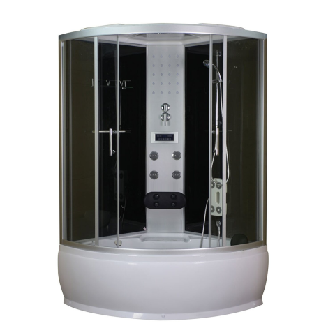 Salsa hidromasszázs gőz-zuhanykabin és fürdőkád, 3000 W. - 5 mm-es színezett biztonsági üveg (front) - 4 mm-es fekete biztonsági üveg (hátfalak) - Gőzgenerátor - 4 hát- és 4 derék-csípő masszírozó fúvóka - Lábmasszírozó - Keverő csaptelep - Funkcióváltó - Esőztető fejzuhany - Többfunkciós, sínes kézi zuhany - Digitális "touch screen" kezelőpanel - LED-es tető- és hangulatvilágítás - FM rádió - Hangszóró - Ventilátoros szellőztetés - Üveg piperep