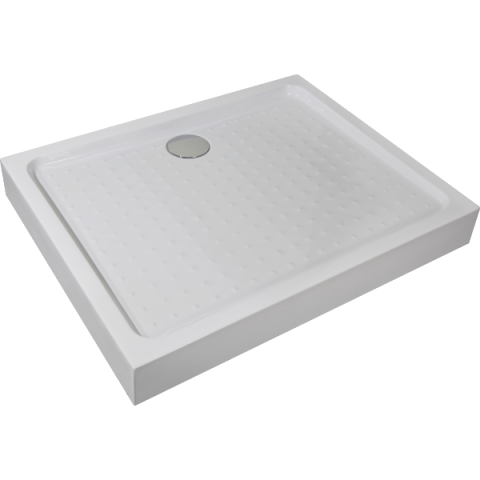 Szögletes zuhanytálca fix előlappal, lábbal és szifonnal.