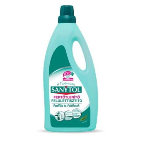 Felület fertőtlenítőszer, 1 l, SANYTOL, eukaliptusz (KHT745) Tökéletesen elpusztítja a baktériumokat, gombákat, vírusokat. -klórmentes -padlókhoz és felületekhez -koncentrált formula -eukaliptusz illattal -hármas hatás: baktericid (5 perc alatt)