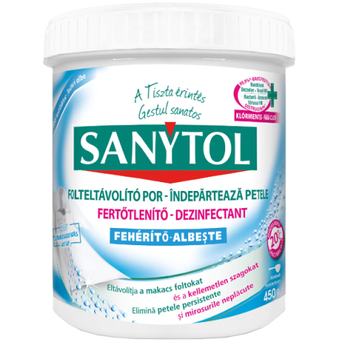 1 kép Sanytol FERTŐTLENÍTŐ FOLTELTÁVOLÍTÓ POR FEHÉR TEXTILIÁKHOZ 450 G