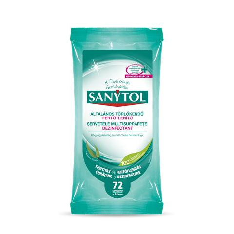 Teljes Sanytol Fertőtlenítő törlőkendő, 36 db maxi/72 db standard, SANYTOL termékleírás