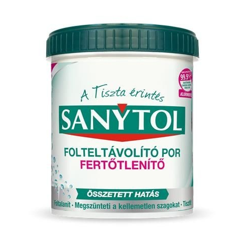 A Sanytol olyan fertőtlenítő folteltávolító port fejlesztett ki fehér ruhákhoz, amely hatékonyan távolítja el a makacs szennyeződéseket és elpusztítja a mikrobák 99, 9%-át már 30°C-on. A termék egyedülálló, enzimeken és aktív oxigénen alapuló formulája mélyen behatol a szövet szálai közé és eltávolítja a szennyeződéseket, illatosítja a ruhákat, illetve visszaadja azok fehérségét. -ideális minden alsóneműhöz (fehérnemű, zokni, trikó, póló stb.