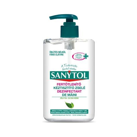 Kézfertőtlenítő gél, pumpás, 250 ml, SANYTOL - KHH733 - Test és szájápolási termékek - A Sanytol kézfertőtlenítő gél hatékony a kórokozókkal szemben és semlegesíti a szagokat. - hatékony, elpusztítja a baktériumok, a vírusok, a candida albicans, a H1N1 ví