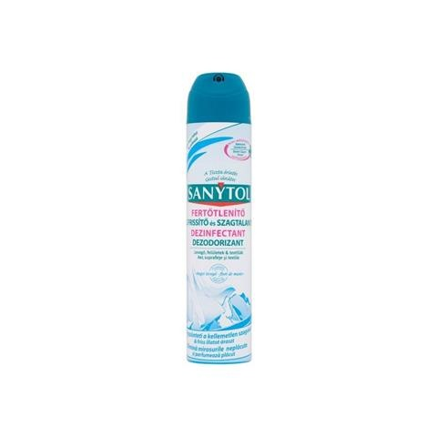 A Sanytol fertőtlenítő légfrissítő aerosol egyedülálló összetételének köszönhetően semlegesíti a kellemetlen szagokat és elpusztítja a felületeken és textíliákon megtelepedett kórokozók 99, 9%-át. -4 az 1-ben formula, fertőtlenít és tisztít, semlegesíti és eltünteti a szagokat (beszívja és semlegesíti a szagokat és megszünteti azok okát, a mikróbákat) -nem hagy foltot, kíméli a textíliát -klór nélkül tisztít és fertőtlenít -levegőbe, felülete