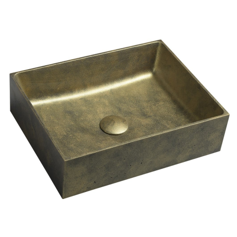 FORMIGO betonmosdó - 47.5x36.5cm arany Elegáns betonmosdó arany kiegészítésekkel. A FORMIGO széria modern dizájnja és tartós anyaga biztosítja a hosszú élettartamot fürdőszobájában. Bevezető szakasz A FORMIGO betonmosdó a Sapho prémium gyűjteménybőll