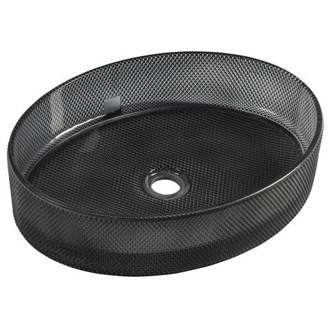1 kép Sapho NOBAL gravírozott üvegmosdó, átm:49x38 cm, fekete