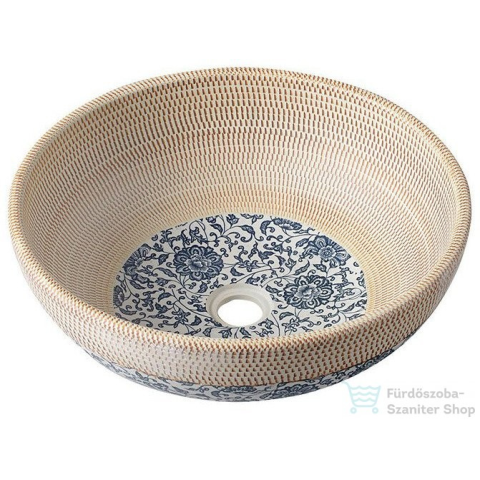 1 kép Sapho PRIORI kerámia mosdó, átmérő 42cm, bézs, kék mintával PI011