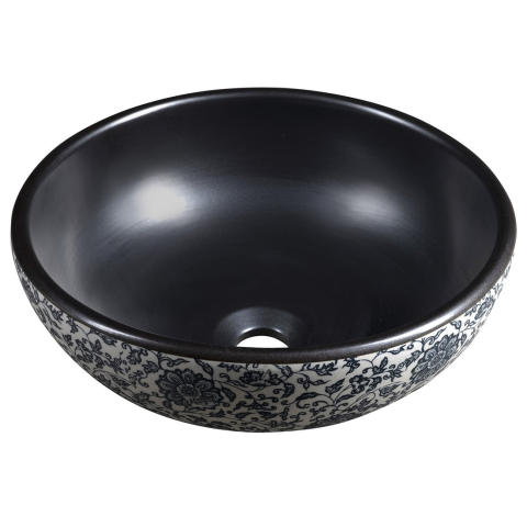 PRIORI kerámiamosdó – fekete virágmintás Elegáns kerámiamosdó 41 cm átmérővel a Sapho PRIORI sorozatból. Fekete virágmintás dizájn, amely stílusos megoldást kínál bármely fürdőszoba berendezéshez. Bemutatjuk a PRIORI kerámiamosdót A Sapho PRIORI mosd