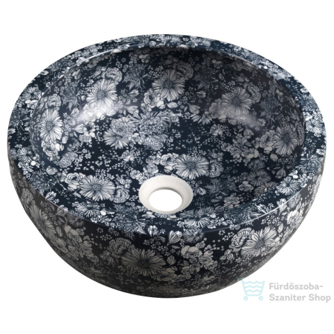 Sapho PRIORI kerámiamosdó, átm:41cm, kék virágos (PI038)