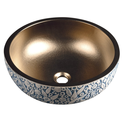 1 kép Sapho PRIORI kerámiamosdó, átm:41cm, réz/ kék virágmintás