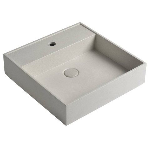 1 kép Sapho QUADRADO beton mosdó lefolyóval, 46x46cm, fehér homokkő (AR469)