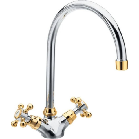 1 kép Sapho REITANO ANTEA Mosogató-csaptelep, mag. 27,5 cm, króm/arany (3092)
