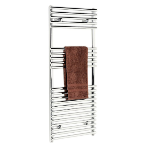 Sapho Deserto kerek formájú króm törölközőszárító radiátor 500x1200mm méretben. Cikkszáma Sapho 1801-12. A csőradiátor vegyesen üzemeltethető központi fűtéssel és/vagy fűtőpatronnal. Teljesítménye 489W, a bekötés pedig 455mm.