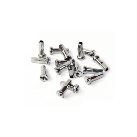 Nikkelezett réz küllőanya 2 mm átmérőjű küllőkhöz, 16 mm hosszú.
