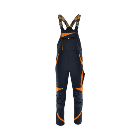 Karcsúsított szabás, rugalmas Canvas anyag, funkcionális kialakítás. - rugalmas, állítható nadrágtartó - fényvisszaverő elemek - térdrész tartós polyester anyagból készült - zsebfedős mellzseb tépőzárral - két első zseb - zollstock számára kialakított zse