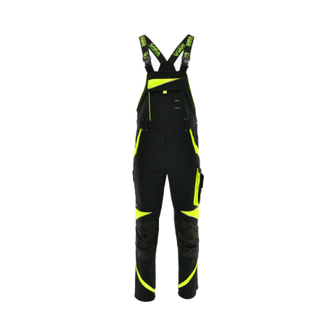 Karcsúsított szabás, rugalmas Canvas anyag, funkcionális kialakítás. - rugalmas, állítható nadrágtartó - fényvisszaverő elemek - térdrész tartós polyester anyagból készült - zsebfedős mellzseb tépőzárral - két első zseb - zollstock számára kialakított zse