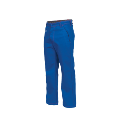 Egyenes szabás, funkcionális kialakítás. - sugárzó hőnek ellenálló (hegesztő) - lángálló - gombos rögzítés - gumírozott hátsó derékrész - két oldalzseb - zollstock számára kialakított dupla zseb - fedővarrás lángálló szálakkal - EN ISO 11611:2015 Klasa 1,