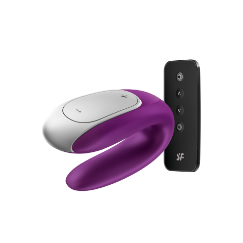 Satisfyer Double Fun - okos, akkus, vízálló, rádiós párvibrátor ,lila.Vezeték nélküli távirányítóval, vagy okostelefonról irányítható párvibrátor két extra erős motorral, mely ideális társ az együttlétek során, hogy a Hölgy és a Férfi is maximálisan kielégítő aktusban részesülhessen!Miért jó?15 ÉV GYÁRTÓI GARANCIA!Ideális azon Hölgyek számára, akik csak a hüvely és a csikló együttes izgatásával képesek orgazmust elérniErgonomikus C-forma - tö