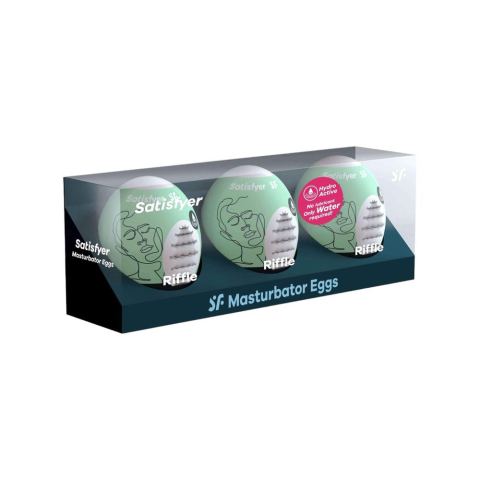 Satisfyer Egg Riffle - tojás maszturbátor szett (3db) Termék specifikáció, tulajdonságok: 3 db-os szett szuper rugalmas minden péniszmérethez tökéletesen idomul innovatív, hydro-aktív anyag, mely víz hatására síkossá válik nem kell hozzá síkosítót has