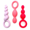 Kiváló minőségű, nagyszerű ár-érték arányú, elsősorban anál kényeztetésre tervezett dildókat tartalmazó készlet a Satisfyer gondozásában. Az árakkal általában igen nagyvonalúan bánó gyártó, a dobozkába 3 darab eltérő mintával, színnel és átmérővel ren