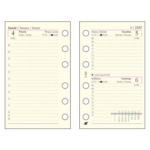2 kép    SATURNUS Gyűrűs kalendárium betét SATURNUS S312 napi sárga lapos 2022.