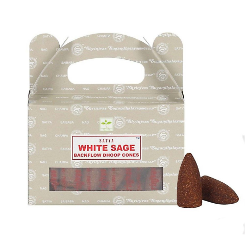 1 kép SATYA White Sage BackFlow (Fehér Zsálya) Lefelé Folyó Kúpfüstölő (24db)