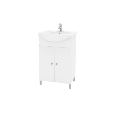 2 ajtós fürdőszoba bútor kerámia mosdóval, magasfényű fehér frontja vákuumpréselt, magasfényű fehér korpusz 3 rétegű UV festett.