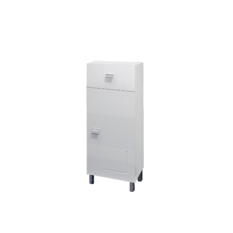 Isabella alacsony szekrény, MDF vákumpréselt frontok, magasfényű fehér. 1 ajtós (csillapított záródású) és 1 fiókos, üveg polcos.